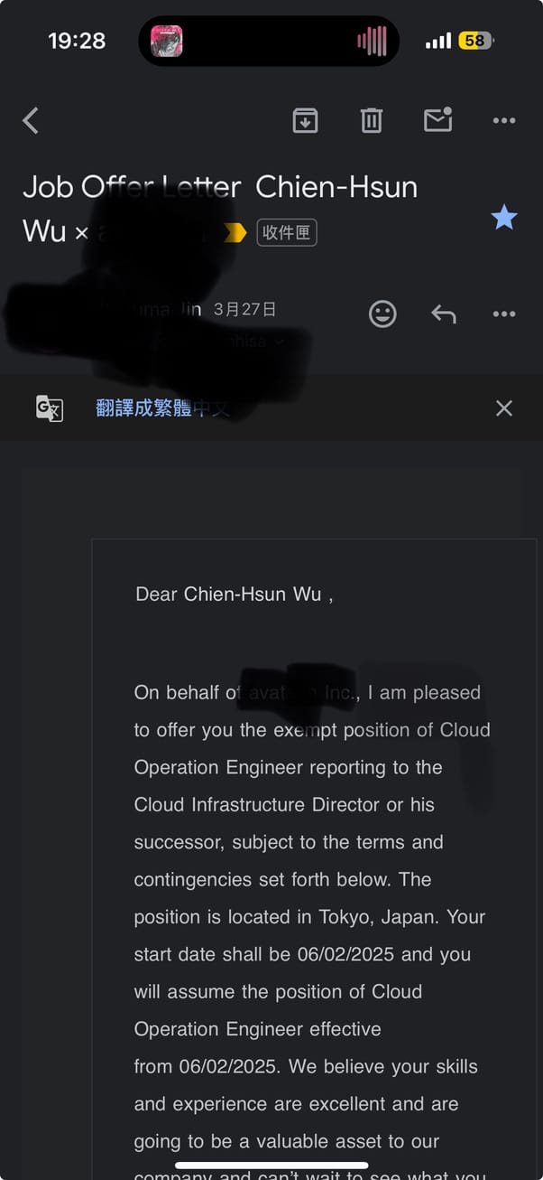 最終我在三月底拿到 offer,並且四月中旬前往新公司報到