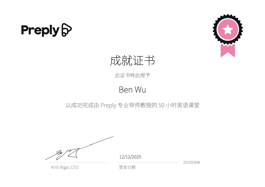 一直有斷斷續續在上英文課,原本上英文課的目標是因為要準備英文面試,到後來就是當作興趣提升自己的語言能力