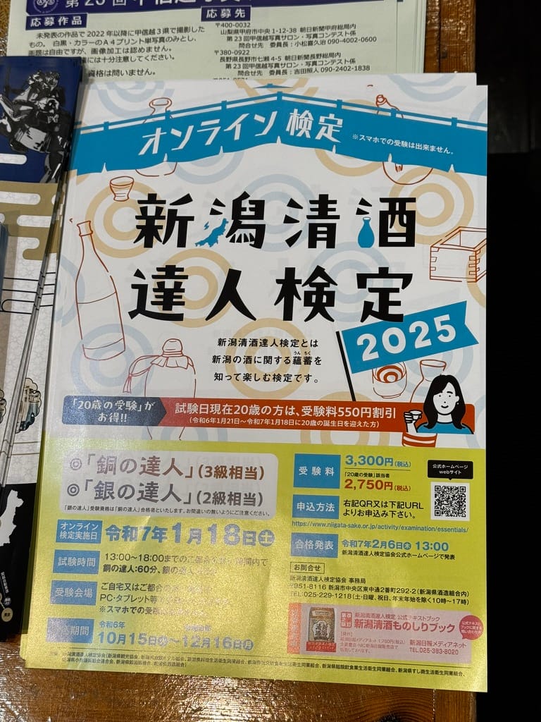 喜歡清酒的人也可以參加看看新潟清酒達人檢定。
